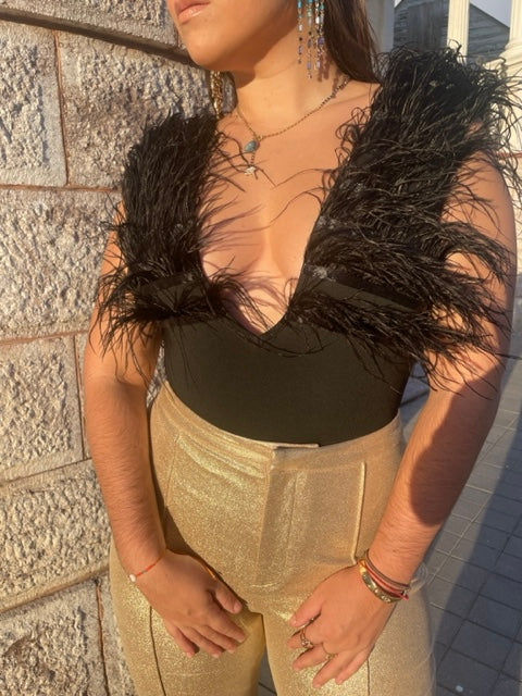 Emily Feather Bodysuit In Black