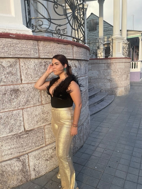 Faux Leather Bell Bottom Zipper Closure Pants w Front Center Pintuck Detail